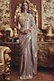 Grey Sequins Net Bead Embellished Jacket Saree Set