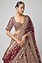 Featuring a maroon lehenga in raw silk base with embroidery. It is paired with an embroidered blouse and a dupatta. Accentuate it with kundan polki jewellery, embellished wedges, and a potli bag for a complete look. Perfect wear for an engagement or wedding ceremony.