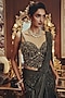 Metallic Black Shimmer Lycra Bead Embellished Draped Saree Set