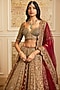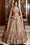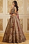 Roqa presents a multi-colored lehenga in net base with floral motif, zardosi, resham, sequins and cutdana embroidery. It is paired with an embroidered blouse having a sweetheart neckline and a scalloped dupatta. Elevate your bridal look with statement polki jewellery, a sleek bun, and bold makeup, perfect for pheras, receptions, and traditional wedding rituals.
