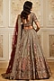 Roqa presents a multi-colored lehenga in net base with zari, resham, sequins and beads embroidery in lattice pattern. It is paired with an embroidered blouse having a deep neckline and tassels detailing, including a dupatta. Elevate your bridal look with statement polki jewellery, a sleek bun, and bold makeup, perfect for pheras, receptions, and traditional wedding rituals.