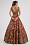 Featuring a red lehenga in net base. It is paired with a blouse and a dupatta. Accentuate it with statement jewellery, embellished heels and a potli for a wedding or engagement ceremony.