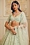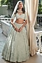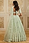 Roqa presents a sea green lehenga in net base with thread, floral and beads embellishments. It is paired with an embroidered V-neck blouse and a dupatta. Elevate your bridal look with statement polki jewellery, a sleek bun, and bold makeup, perfect for pheras, receptions, and traditional wedding rituals.