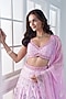 Featuring a powder pink lehenga in viscose dull satin base with hand work. It is paired with an embroidered blouse and a dupatta. Style these intricately embroidered lehengas with zircon jewellery and a sleek bun to balance the rich hues of the ensemble, perfect for weddings, sangeet or engagement ceremonies.