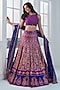 Purple & Blue Viscose Dull Satin Handwork Lehenga Set