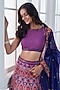 Featuring a purple and blue lehenga in viscose dull satin base with hand work. It is paired with an embroidered blouse and a dupatta. Style these intricately embroidered lehengas with zircon jewellery and a sleek bun to balance the rich hues of the ensemble, perfect for weddings, sangeet or engagement ceremonies.