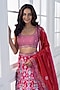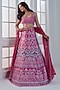 Featuring a reddish-pink lehenga in viscose dull satin base with hand work. It is paired with an embroidered blouse and a dupatta. Style these intricately embroidered lehengas with zircon jewellery and a sleek bun to balance the rich hues of the ensemble, perfect for weddings, sangeet or engagement ceremonies.