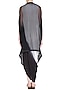 This set features an ombre shaded dress in cotton satin paired with black chiffon asymmteric cape with silver zardozi birds and floral embroidery highlighted with sequins embellishment all over.