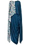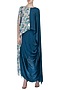 Featuring a blue kaftan top in satin base. It is paired with matching drape skirt.
