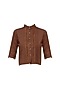Featuring a brick red chinese collar button down shirt in crepe base with raw edges and button closure detailing on centre front.