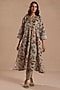 Featuring a beige kurta in feather linen base with a V-neckline and floral motifs. It is paired with tapered pants. Accentuate with statement jewellery and heels for festive occasions or family gatherings.