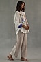 Featuring beige pants in feather linen base. Accentuate it with top, statement earrings and flats for a casual wear.