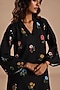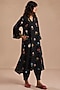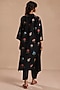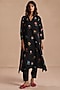 Black Feather Linen Floral Motif A-Line Kurta Set