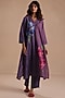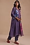Featuring a blue kurta in feather linen base with hand drawn floral and watercolor stripes. It is paired with purple straight pants. Accentuate with statement jewellery and heels for festive occasions or a comfortable yet stylish office wear.