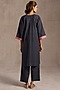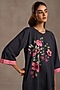 Featuring a deep navy tunic in linen base with floral print. It is paired with straight pants. Accentuate with dangler earrings and mules for casual outings or family gatherings.