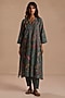 Dusty Blue Feather Linen Floral Motif Kurta Set