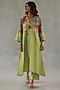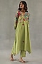 Featuring a green kurta in feather linen base with floral print. It is paired with pants. Accentuate it with statement earrings and flats for festive occasions.