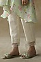 Featuring ivory pants in cotton linen base with an organza panel and hand embroidered motifs. This contains only one piece.