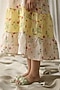 Featuring an ivory and lemon tiered dress in gauze linen base with watercolor print. It is paired with a matching cotton slip.