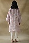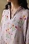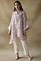 Featuring a mauve A-line tunic in gauze linen base with print. It is paired with a cotton slip.