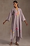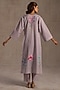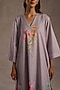 Mauve Grey Linen Floral Artwork Kurta Set