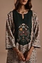 Featuring a multi-colored kurta in pashmina base with floral print. It is paired with green pants. Accentuate it with statement jewellery and heels for festive occasions or family gatherings.