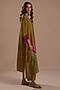 Featuring a mustard kurta in habutai silk base with hand sketch watercolor floral motifs and a v-neck. It is paired with straight-fit pants. Accentuate with statement jewellery and heels for festive occasions or family gatherings.