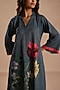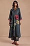 Navy Blue Feather Linen Floral Printed Kurta Set
