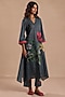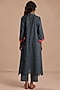 Featuring a navy blue kurta in feather linen base with a V-neckline and floral print. It is paired with printed straight pants. Accentuate with statement jewellery and heels for festive occasions or a comfortable yet stylish office wear.