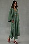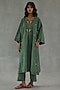 Featuring an olive green phiran kurta in feather linen base with pockets, motifs detail and floral hand paint. It is paired with pants. Style it with traditional juttis, a potli bag, and statement earrings to complete the ethnic look, ideal for festive gatherings, cultural events, or family celebrations.