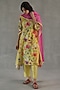 Featuring a pink and yellow stole in chanderi base with contrasting trim details. Accentuate it with kurta set, statement earrings and flats for festive occasions.