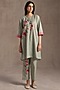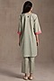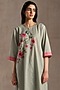 Featuring a sage green tunic in linen base with floral print. It is paired with straight pants. Accentuate with dangler earrings and mules for casual outings or family gatherings.