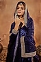 Featuring a blue kurta in micro velvet base with lacework. It is paired with pants and a mukaish organza dupatta. Accentuate it with statement jewellery and heels for a festive occasion, wedding or pooja ceremony.