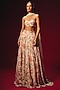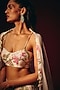 Featuring a white lehenga in pure organza base. It is paired with a pure chanderi blouse having embroidery and a net dupatta having chanderi border and tassel detailing. Accentuate it with delicate pearl chandelier earrings, a sleek kundan choker and metallic embellished heels for a graceful yet striking look, ideal for weddings, festive functions or engagement celebrations.