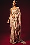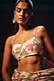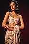 Featuring a white pre-draped saree in pure organza base. It is paired with a pure chanderi blouse having floral embroidery and noodle strap detailing. Accentuate it with statement silver earrings, a sleek bracelet and embellished heels to elevate its festive shine, ideal for cocktail nights, or elegant evening celebrations.