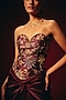Featuring a wine corset in pure tussar silk base with hand embroidery. It is paired with armani satin draped skirt. Accentuate it with delicate jewellery and strappy heels to enhance its feminine silhouette, ideal for evening parties or cocktail celebrations.