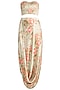 Pista Green & Peach Printed Drape Skirt With Embroidered Tube Blouse