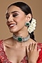 Featuring a gold finish choker necklace studded with moissanite, emerald stone and diamonds, set in brass. It is paired with a matching pair of earrings. Perfect wear for festive occasions or wedding ceremonies.