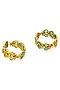Featuring a pair of gold finish round earrings studded with moissanite diamond and green natural stones, set in brass. Perfect for wedding celebrations, festive soirees, cultural gatherings or evening events, adding a regal charm to every look.