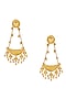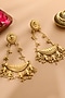 Featuring a pair of gold finish chandelier earrings studded with kundan polki, set in brass. Perfect for wedding celebrations, festive soirees, cultural gatherings or evening events, adding a regal charm to every look.