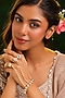 Featuring a gold finish floral hathphool studded with kundan polki, crystals and pearls, set in brass. Perfect for pre-wedding functions, festive celebrations, weddings.
