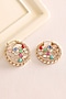 Featuring a pair of gold finish hoop earrings studded with kundan polki and navratna stones, set in brass. Perfect for wedding celebrations, festive soirees, cultural gatherings or evening events, adding a regal charm to every look.