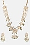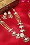 Featuring a gold finish long necklace studded with kundan polki, pearls and semi-precious stones, set in brass. It is paired with a matching pair of earrings. Accentuate this elegant jewellery set with your look for a polished finish, ideal for festive functions, family gatherings or wedding celebrations.
