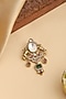 Featuring a gold finish brooch studded with kundan polki, green and ruby stones, set in brass. Versatile in style, this brooch can be pinned on a saree pallu, blouse neckline, dupatta, or even styled on jackets and shawls for a refined fusion touch. A classic accessory meant to be worn, cherished, and passed on.
