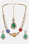Gold Finish Moissanite & Multi-colored Semi-Precious Stone Necklace Set
