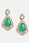 Featuring a gold finish necklace studded with moissanite and multi-colored semi-precious stones, set in brass. It is paired with a matching pair of earrings and a maangtikka. Accentuate this elegant jewellery set with your look for a polished finish, ideal for festive functions, family gatherings or wedding celebrations.
