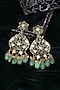 Featuring a pair of 18kt gold plated handcrafted dangler earrings studded with green kundan polki, set in brass. Perfect for wedding celebrations, festive soirees or cultural gatherings adding a regal charm to every look.