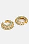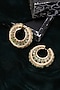 Featuring a pair of 18kt gold plated handcrafted hoop earrings studded with green kundan polki, set in brass. Perfect for wedding celebrations, festive soirees or cultural gatherings adding a regal charm to every look.