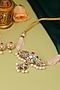 Featuring a 18kt gold plated handcrafted choker necklace studded with navratna kundan polki, set in brass. It is paired with a matching pair of stud earrings. Perfect for wedding celebrations, festive soirees or cultural gatherings adding a regal charm to every look.
