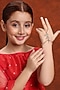 Featuring a gold finish hand harness for girls studded with kundan polki, pearls and semi precious stones, set in brass. Perfect choice for weddings, parties and for other Indian festivities.